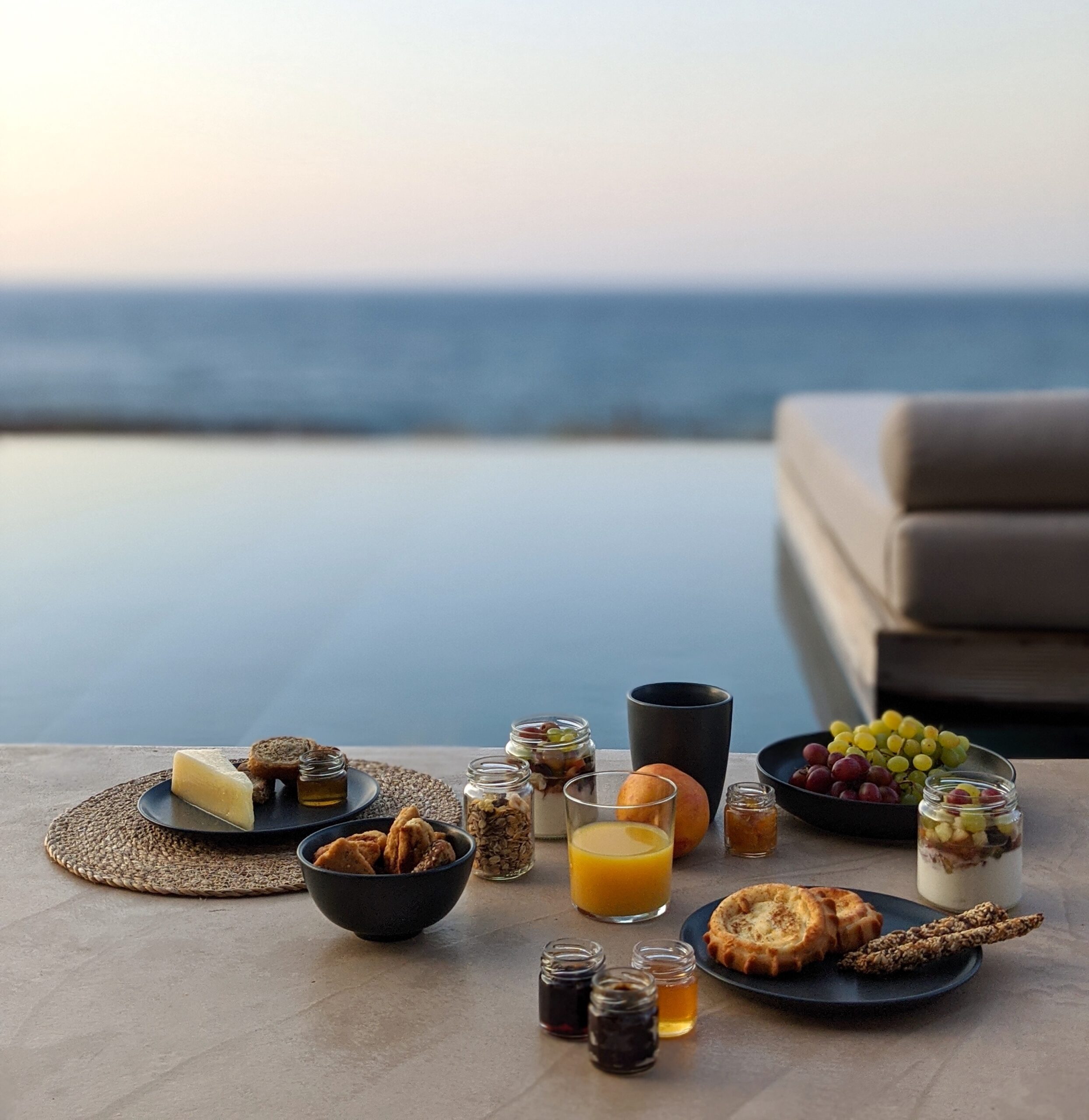 Delicious flavours and intriguing smells in your own villa. Our Head Chef, and his team carefully collect fresh ingredients from our local producers as we wish to deliver you high quality products and an amazing Cretan culinary experience.